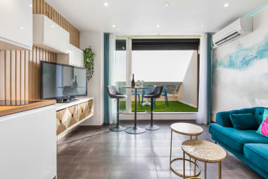 Blue Lagoon is a luminous apartment located on the 4th floor of an iconic building in Héliopolis, within the Cap d’Agde Naturist Village. Quiet and airy, it offers modern comfort and a spacious terrace with panoramic views of the sea and gardens. Perfect to fully enjoy the unique naturist atmosphere.