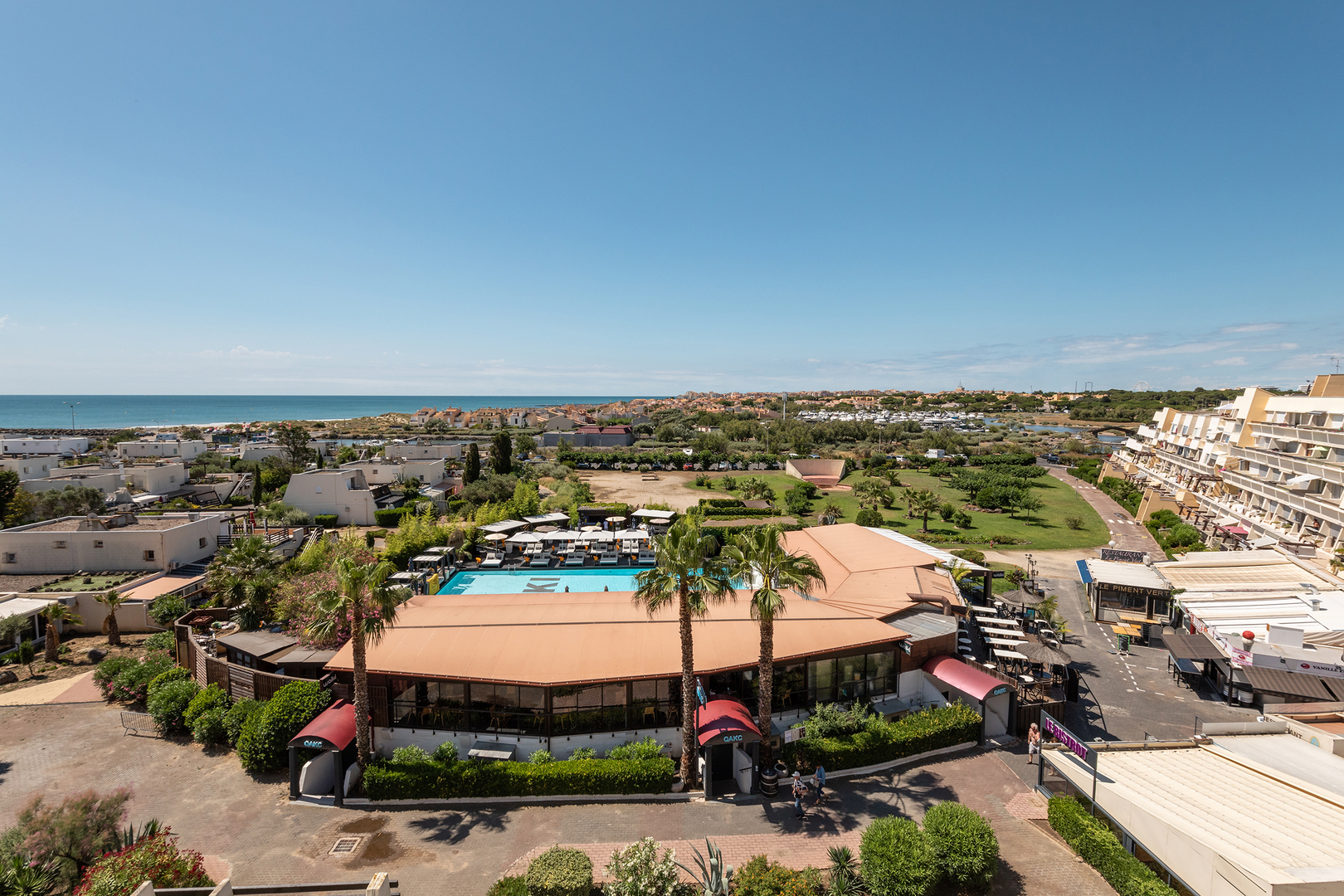 [Photo : bar-perchoir-cap-agde.jpg – Le bar Le Perchoir avec vue sur le village]