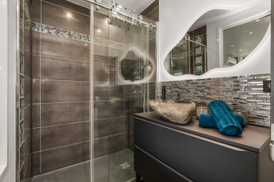 Doccia moderna, lavabo, asciugacapelli e WC. Asciugamani inclusi.
